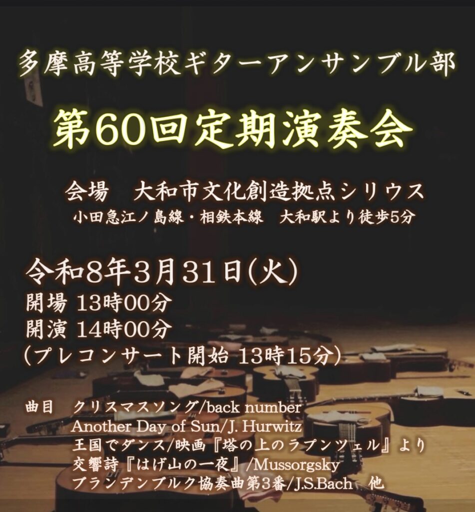 3/31(火)に大和市文化創造拠点シリウスにて行われる定期演奏会についてのお知らせです✨️
